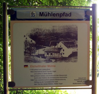 Hinweisschild am Mühlenpfad 2010 - Eichelthaler Mühle |