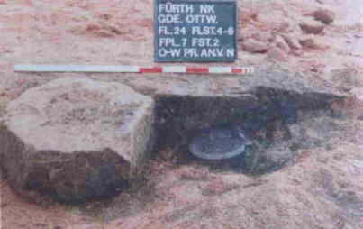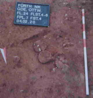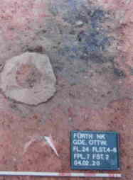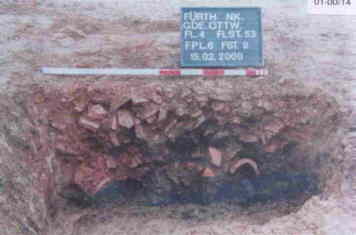 Bei Fundplatz 1 von Fürth, unmittelbar an der L 289 gelegen, handelt es sich um eine römische Siedlung. Die Örtlichkeit wurde im Zuge der sogenannten baubegleitenden Untersuchungen aufgedeckt, die auf jenen Streckenabschnitten stattfinden, für die keine archäologischen Befunde in den Akten des Staatlichen Konservatoramtes verzeichnet sind. Um so erfreulicher ist, wenn gerade während der Baubegleitung Neues zutage gebracht wird - nicht zuletzt ein Beleg für die akribische Arbeit der Archäologen vor Ort. |