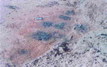 Die Geschichte von Fundplatz 2, nur 250 m entfernt von Fundplatz 1 gelegen, beginnt mit einem Skandal: Als nach den ersten Freilegungsarbeiten auf der Fläche durch Herrn Henz die Grabungsarbeiten an das Team von Frau Emser übergeben worden waren, wurde die Örtlichkeit in der Nacht vom 03. auf den 04. Februar geplündert. Unbekannte hatten zwei wichtige Befunde dieses hochinteressanten römischen Gräberfeldes entwendet, noch bevor sie von den Spezialisten freipräpariert werden konnten: eine Urne sowie eine kleine Steinkiste in Hausform mit zentraler rechteckiger Eintiefung zur Aufbewahrung des Leichenbrandes. Gerade letztere stellt einen besonders empfindlichen Verlust dar. Es wurden Herr Dr. Reinhard vom Staatlichen Konservatoramt und die Kripo Ottweiler eingeschaltet. |