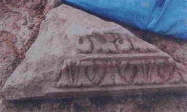 war abgedeckt mit dem ornamental verzierten Fragment eines Sandsteinfrieses,