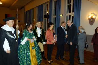 Schließlich ließ Dr. Brück noch einmal die zurückliegenden Jahre Revue passieren und legte anhand einiger Stichworte eine umfassende Leistungsbilanz vor: die Altstadtsanierung, die Etablierung der Museumsszene, der Bau des neuen Aussichtsturmes, die Einrichtung von Kinderkrippen, die Umsetzung von Neubaugebieten, die Einführung des „Busssis“, der Bau oder die Sanierung von Brücken und öffentlichen Gebäuden, die Akquise von Finanzmitteln für die Stadt und schließlich auch den Bau von Kläranlagen im Zusammenhang mit einer nachhaltigen Umwelt- und Energiepolitik. Nicht unerwähnt ließ er die Projekte Hochwasserdamm und die Bereicherung der Stadt durch ein breites Kulturangebot. Eine Depesche, zugestellt von Markus Klein vom Infanterie-Regiment Nassau-Saarbrücken, sandte die in den Alpen weilende „Reichsgräfin von Ottweiler“. Sie hatte zu Rödles Rückzug eine große Torte backen lassen. |