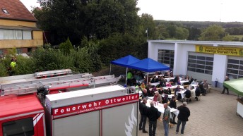 Am Samstag, den 28.11.2015, veranstaltete der Löschbezirk Fürth der Feuerwehr Ottweiler seinen alljährlichen Familienabend im Gerätehaus in Fürth. Löschbezirksführer Klaus Jochem begrüßte alle Feuerwehrangehörigen mit Ihren Familien, Freunde des Löschbezirks, den Wehrführer der Stadt Ottweiler Stefan Weißmann, den 1. Beigeordneten der Stadt Ottweiler Hans-Peter Jochum (in Vertretung für Bürgermeister Holger Schäfer), unseren stellvertretenden Ortsvorsteher Axel Haßdenteufel und das Deutsche Rote Kreuz OV Fürth. Danach ließ er das vergangene Jahr 2015 Revue passieren. 19 Einsätze hatte der Löschbezirk bis dato abzuarbeiten (höchste Einsatzzahl hinter Ottweiler-Zentral), von denen so mancher in den Köpfen noch präsent ist. Des Weiteren wurden eine Familienwanderung, eine Dienstfahrt zur Berufsfeuerwehr Saarbrücken, das zweitägige Feuerwehrfest im September und eine Jugendfeuerwehrfahrt und viele weitere Veranstaltungen durchgeführt. Hinzu kommen die vielen Übungsstunden der Aktiv- und der Jugendwehr und alles andere was rund um den Feuerwehrdienst anfällt, wie Wartungen, Instandhaltungen, Umbauten, Einsatznachbereitungen, Besprechungen und vieles mehr. Klaus Jochem schloss damit, dass der Feuerwehrdienst allgemein immer intensiver wird und auch im neuen Jahr viel zu tun sein wird. Er bedankte sich ausdrücklich bei allen Anwesenden für die Einsatzbereitschaft und allseits tatkräftige Unterstützung durch die Familien auch außerhalb des Einsatzdienstes. Den Einsatz der Alterswehr hob er besonders hervor. Nach weiteren Grußworten durch den 1. Beigeordneten der Stadt Ottweiler Hans- Peter Jochum, der auch die Grüße von Holger Schäfer mitbrachte, durch Stefan Weißmann und Axel Haßdenteufel, wurden die Beförderungen und Ehrungen durchgeführt. |