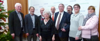Der Ehrenbeigeordnete der Stadt Ottweiler, Wilfried Hopf, erhielt vom saarländischen Minister für Inneres und Sport, Klaus Bouillon, in Anerkennung seiner herausragenden ehrenamtlichen Tätigkeit die Sportplakette des Saarlandes. Der Minister unterstrich die Integrationsfunktion des Sports für die Gesellschaft, und dies auch mit Bezügen zur Migrationsproblematik. Er würdigte die Verdienste des Ottweiler Bürgers für den Sport und die Vereine. Während der Feierstunde in der Staatskanzlei war in Stellvertretung des Bürgermeisters der Beigeordnete, Johannes Schmitt, zugegen. Er gratuliert im Namen der Stadt Ottweiler herzlich und dankte Hopf. |