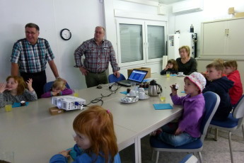 „Unsere Kinder sehen die Arbeiten zur Nahwärmeversorgung täglich auf ihrem Weg in den Kindergarten, vor ihrer Haustür und direkt am Kindergarten. Das war der Anlass für den Besuch“, erklärte Claudia Conzelmann-Schwingel, die mit den Kindern vom Kindergarten Fürth ins Büro der Fürther Energiegenossenschaft kam. Zugleich passt das Projekt Nahwärmeversorgung zum Jahresthema der Stiftung "Haus der kleinen Forscher", dem sich das Kindergartenteam widmet. |