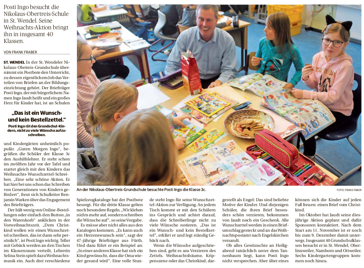 Saarbrücker Zeitung St. Wendel, Beitrag und Foto Frank Fraber - 25.11.2019 |